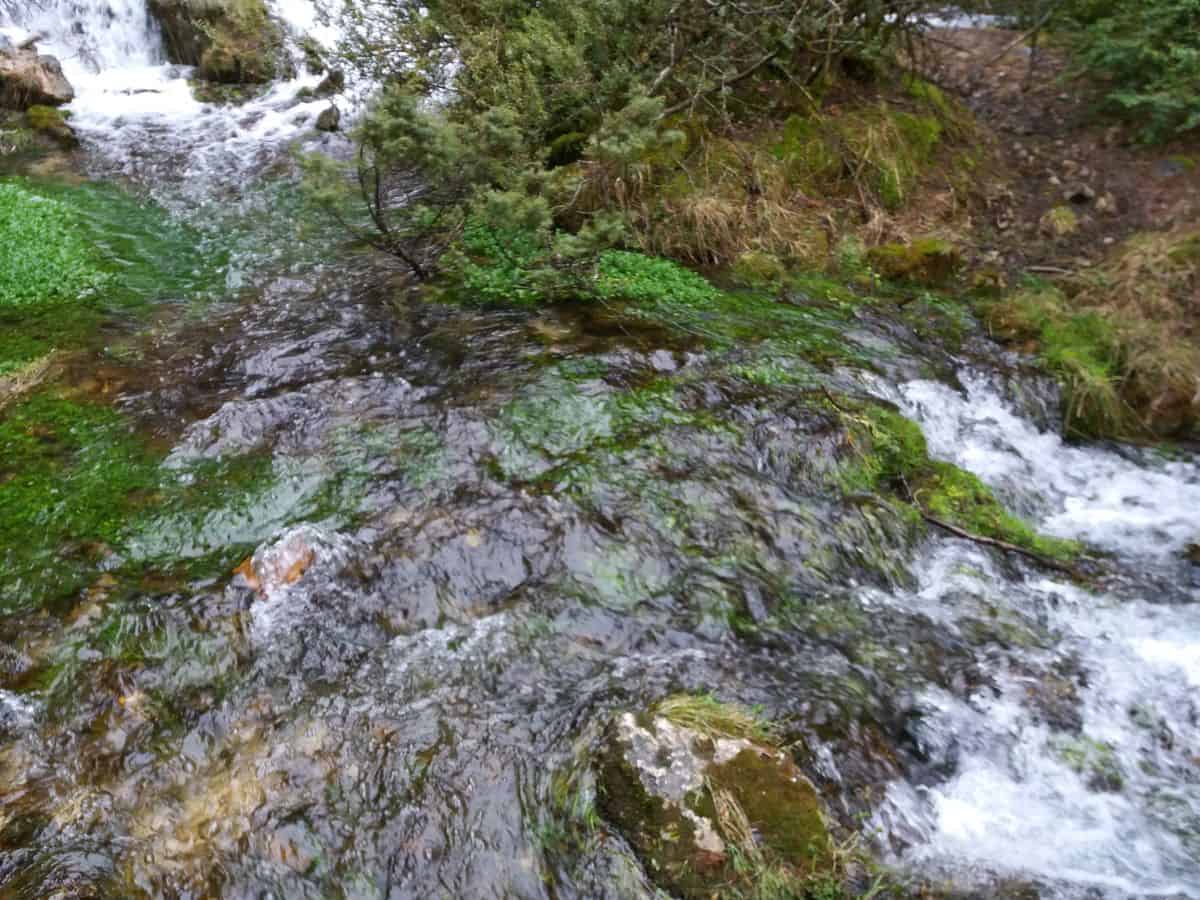 Es fácil dejarse conquistar por este frescor natural y por el cristal líquido que brilla en las salpicaduras del poderoso manantial. Unos metros más arriba contemplamos una vista superior de los torrentes verticales desde un pequeño mirador donde el río se calma y forma una tabla acuosa rodeada de importantes bosques relícticos eurosiberianos (supervivientes de fenómenos naturales) con acebos, tilos y arces; comunidades rupícolas (que habitan zonas rocosas) turberas y prados húmedos salpicados de musgo tiñen de color todo lo que vemos.